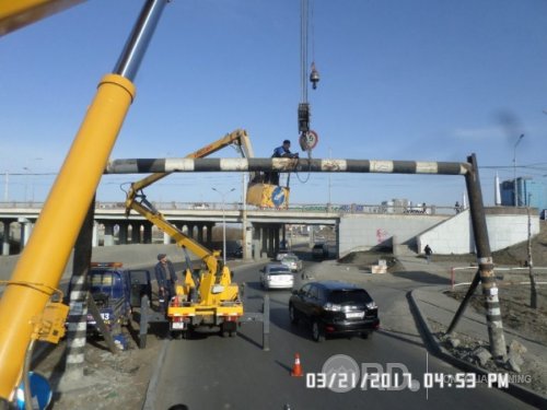 | "Улаанбаатар зам засвар, арчлалтын газар” ОНӨААТҮГ-т энэ сарын 21-ний өдрийн 15 цагийн орчимд Энхтайваны гүүрний доорх баруун талын өндрийн хязгаарлалтыг машин мөргөснөөс хазайж, унах гэж байна гэсэн дуудлага иржээ. Дуудлагын дагуу тус газрын Шуурхай ажлын хэсэг газар дээр нь очиж, яаралтай арга хэмжээ авч ажилласан байна. Ингэхдээ гурван хүний бүрэлдэхүүнтэйгээр портер, автопишик, кран зэрэг техник ашиглан салсан хэсгийг гагнаж, тулгуурыг шинээр бэхэлж гагнан хэвийн болгожээ. ... |