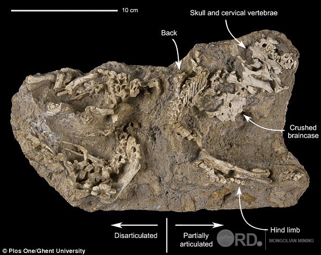 Plos One сэтгүүлд бичсэн өгүүллээр бол голын эргийн элсэнд гадрозавр үүрээ зассан байсан нь олон арван сая жил хөрш шороонд дарагдан өнөөг хүрчээ. Гэхдээ динозаврын үр төл өндгөн дотроо байсан уу эсвэл дөнгөж өндөг нь хагарч гарч ирээд байхдаа шороонд булагдсан уу гэдгийг эрдэмтэд мэдэхгүй байгаа аж. Ямартай ч, олдворын гавлын ясны урт нь одоогоор олдоод байгаа хамгийн том гадрозаврын араг ясны таван хувьтай тэнцэхүйц хэмжээнд байгаа нь тэд хөгжлийн эхэн үедээ явж байсныг харуулж байна гэж үзжээ.