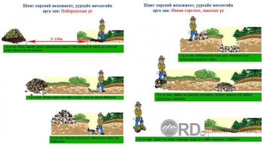 2014 онд Швейцарийн хөгжлийн агентлагын санхүүжилтээр Азийн сан "Бичил уурхайчдын нөхөн сэргээлтийн аргачлал”- ыг боловсруулж мөрдүүлсэн байна. Өөрөөр хэлбэл гадны орны туршлагыг Монгол орны онцлогт тохируулж бичил уурхай нөхөрлөлүүдийн боломж, байгаль цаг уурын онцлог зэргийг харгалзан монгол эрдэмтэд хоёр жилийн турш боловсруулжээ. Монголын хөрсөнд энэ аргачлал илүү үр дүнтэй гэж батлагдсан юм байна. Аргачлал нь гурван онцлоготой. Тухайлбал, биеологийн нөхөн сэргээлтэд тухайн нутагт ургадаг ургамлын үрийг нь хатааж улмаар тэрхүү хатаасан үрээр сэргээдэг учраас буцаж унаган төрхөндөө хурдан орох боломжтой байгальд ээлтэй юм. Нөгөө нэг онцлог нь нутгийн иргэдээс ямар аргачлалаар нөхөн сэргээлт хийх талаар санал авч хэлэлцүүлдэг. Дараа нь энэ талбайг юуны зориулалтаар ашиглах тухайд нутгийн иргэдээс мөн санал авдаг онцлогтой ажээ. Бэлчээрийн, ойн үржүүлгийн, аялал жуулчлал, хиймэл нуур гэх мэтээр цаашид ямар чиглэлээр газрын эргэлтэд оруулах уу гэдгийг нутгийн иргэдтэй ярилцаж ажлын төлөвлөгөө гаргадаг байна. Түүнчлэн бага зардалтайгаар онцлогтой. Монголын цаг агаар, байгалийн тогтоц харилцан адилгүй бүс нутагт энэ аргачлалаар 2014, 2015 онд Швейцарийн хөгжлийн агентлаг есөн аймгийн 14 сумын нутагт 17 талбайд 210 гаруй га-д бичил уурхайчдын нөхөрлөлүүдээр биологийн нөхөн сэргээлт хийлгэсэн байна. Энэ жилийн тухайд таван аймгийн найман газарт 37.5 га газарт хийгээд байгаа тухай Швейцарийн хөгжлийн агентлагийн Тогтвортой бичил уурхай төслийн орон нутгийн засаглалын мэргэжилтэн Ч.Оюунчимэг ярьж байв. Уул уурхай олборлолт явагдсан газарт байгаль орчин биологийн төрөл зүйлд нөлөөлөх нь зайлшгүй гэдгийг хүлээн зөвшөөрөх хэрэгтэй. Нөлөөлөхгүй гээд олборлолт эхлүүлдэг. Үүнээс болж том хар нүх энд тэндгүй үүсдэг. Тэгэхээр сөрөг нөлөөллийг тооцохгүйгээр төслүүдийг хэрэгүүлжсэнээс болж асуудал үүсдэг гэж уг аргачлалыг боловсруулсан Тогтвортой хөгжилд талуудын оролцоо ТББ-ын тэргүүн П.Болормаа хэлэв.